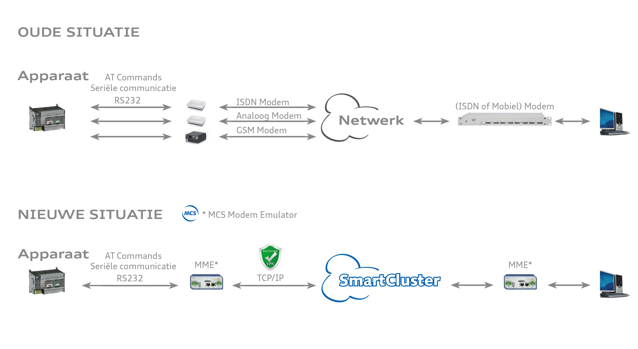Modem Emulator MME situatie MCS